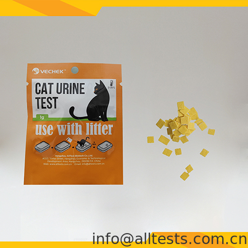 2. انشر اختبار الألبومين الدقيق في بول القطط بالتساوي قدر الإمكان فوق رمل القطط.