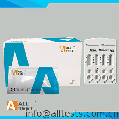 اختبار الدنجي/الشيكونغونيا/فيروس غرب النيل السريع المركب (الدم الكامل/المصل/البلازما) هو مقايسة مناعية كروماتوغرافية سريعة للكشف النوعي عن مستضد الدنجي NS1، والأجسام المضادة لفيروس الدنجي، وفيروس الشيكونغونيا، وفيروس غرب النيل في الدم الكامل البشري أو المصل أو البلازما.