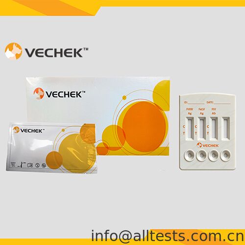 كاسيت الاختبار السريع FHW Antigen + FeLV Antigen + FIV Antibody Combo (دم كامل / مصل / بلازما) هو كاسيت اختبار مركب لتشخيص وجود مضاد دودة القلب القططية (FHW Ag) بشكل متباين,مضاد فيروس سرطان الدم للقطط (FeLV Ag) أو مضاد نقص المناعة للقطط (FlV Ab) في الدم الكامل للقطط والمصل والبلازما.